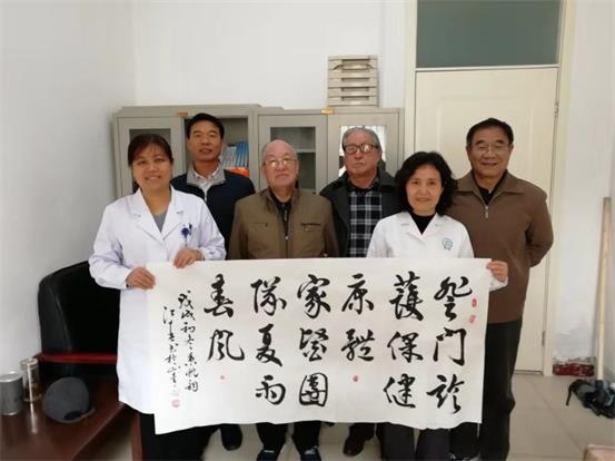 11月22日上午,退休干部吴秉忱和江春二位教授在离退休工作处处长安海、总支成员沈永曦的陪同下来到“家庭医生”签约工作室,将吴教授起草、江教授书写的“登门诊护,保健康体,家医团队,夏雨春风”的书法作品赠送给医务团队。