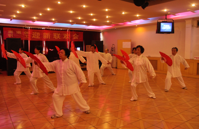 刘先义代表学校党委向老同志们通报了学院发展情况,向参加演出的同志及全校所有老同志致以节日的问候,祝老同志们新年快乐、合家幸福、健康长寿。联欢会在二十四式花样太极拳的表演中拉开序幕,老同志们个个喜气洋洋,整个会场充满了节日气氛。五十四式太极工夫扇的表演,赢得了观众热烈的掌声,独唱、二胡独奏的美妙乐曲声让大家听得如痴如醉,老同志们充满活力的翩翩舞姿展现出健康、乐观的精神风貌和对和谐社会的赞美。