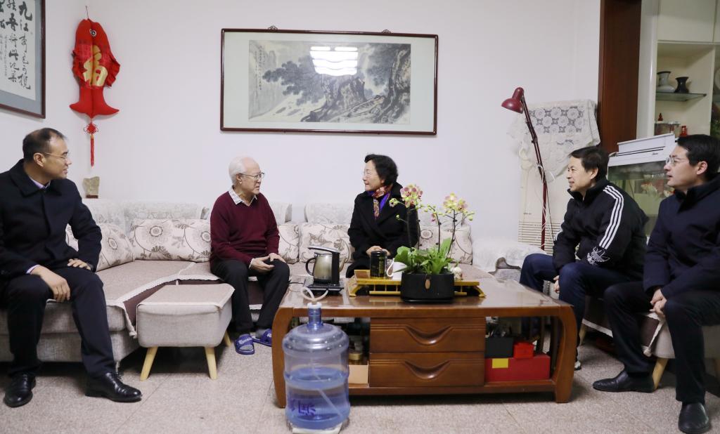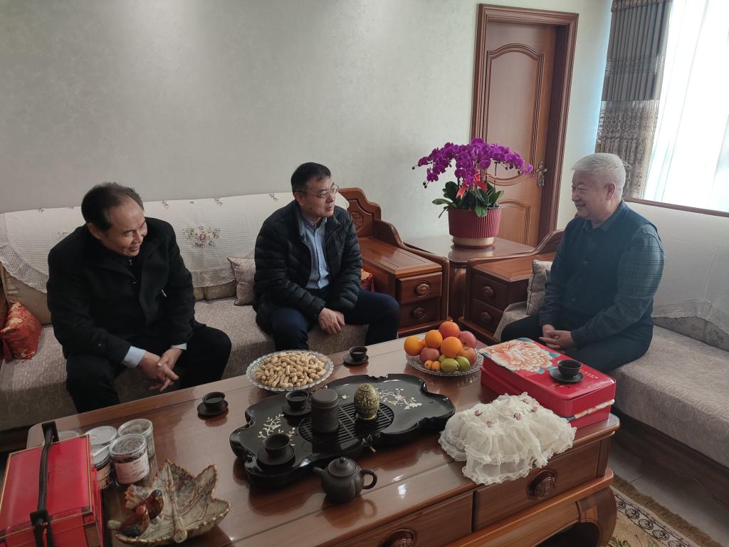走访中,校领导与老领导、老教授促膝交谈,仔细询问了他们身体状况及家庭生活情况,代表全校师生员工给大家拜年,祝愿各位老领导、老教授及全体退休人员春节愉快、身体健康、家庭幸福!