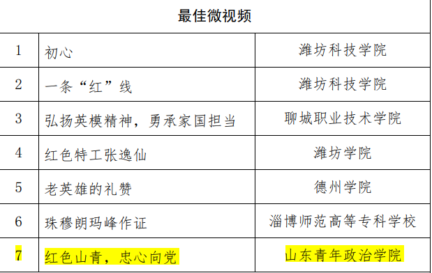 近日,我省教育厅关心下一代委员会公布了2022年全省高校“读懂中国”活动评审结果。我校退休工作处联合现代服务管理学院共同选送的《红色山青,忠心向党》喜获最佳征文、最佳微视频。